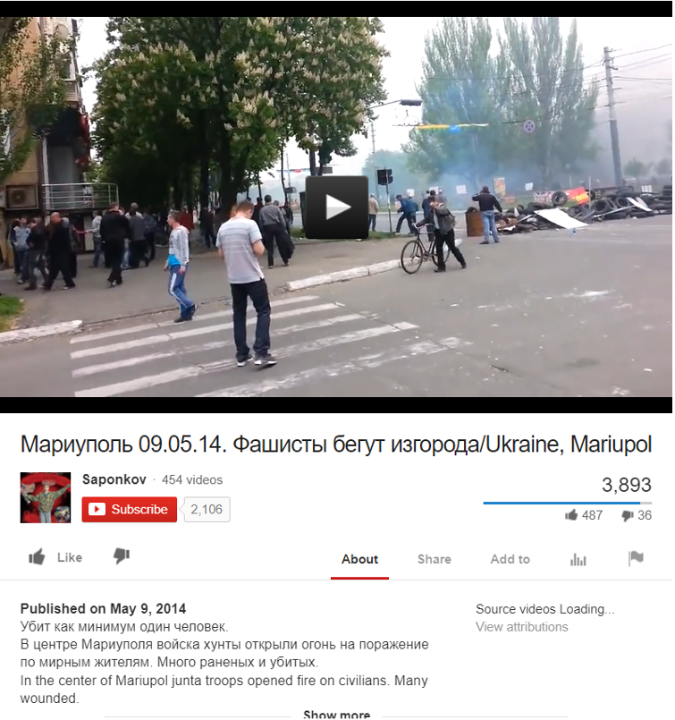 标题和描述称,视频中的这一幕发生于2014年5月9日的乌克兰顿涅茨克州第二大城市马里乌波尔(Mariupol)。