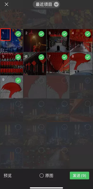 另外,现在发送图片时,微信中会显示选取的图片数量和发送顺序:
