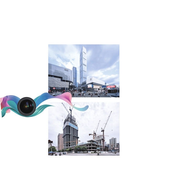 国金中心商业楼建成后,谭宇舸曾精心选取了合适的角度,拍了一张照片,在照片里,国金中心与平和堂奇迹般地紧邻在一起,玻璃外墙铺满了整个天空。