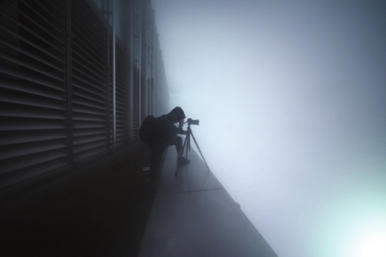 2018年4月,长沙,在雾中拍摄的谭宇舸。图/受访者提供