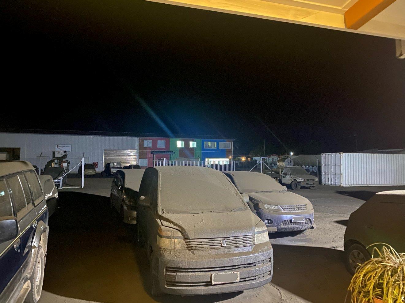 △被火山灰覆盖的车辆