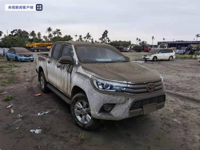 △当地时间22日,汤加首都努库阿洛法,被火山灰覆盖的汽车。