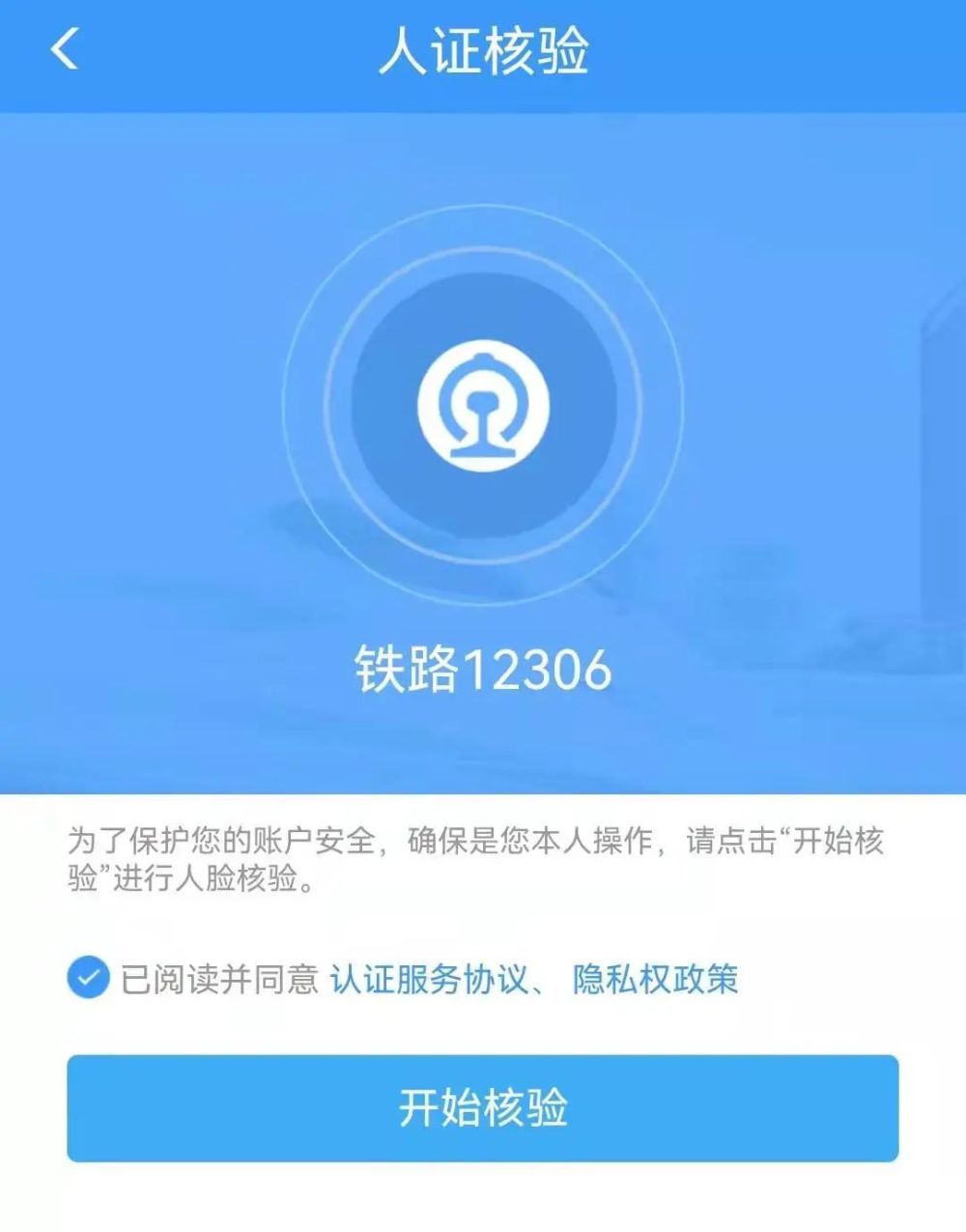 3、勾选认证服务协议选项,开始核验
