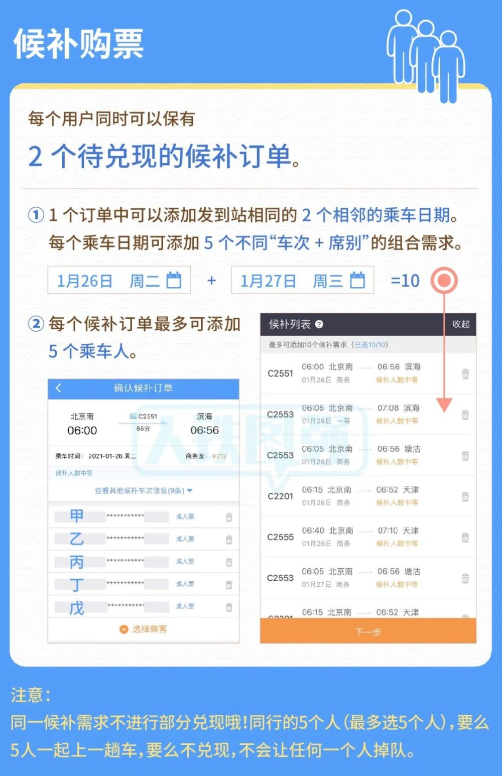 现在,候补购票的最晚截止时间由开车前6小时调整为2小时,兑现成功的机会又增加了哦!