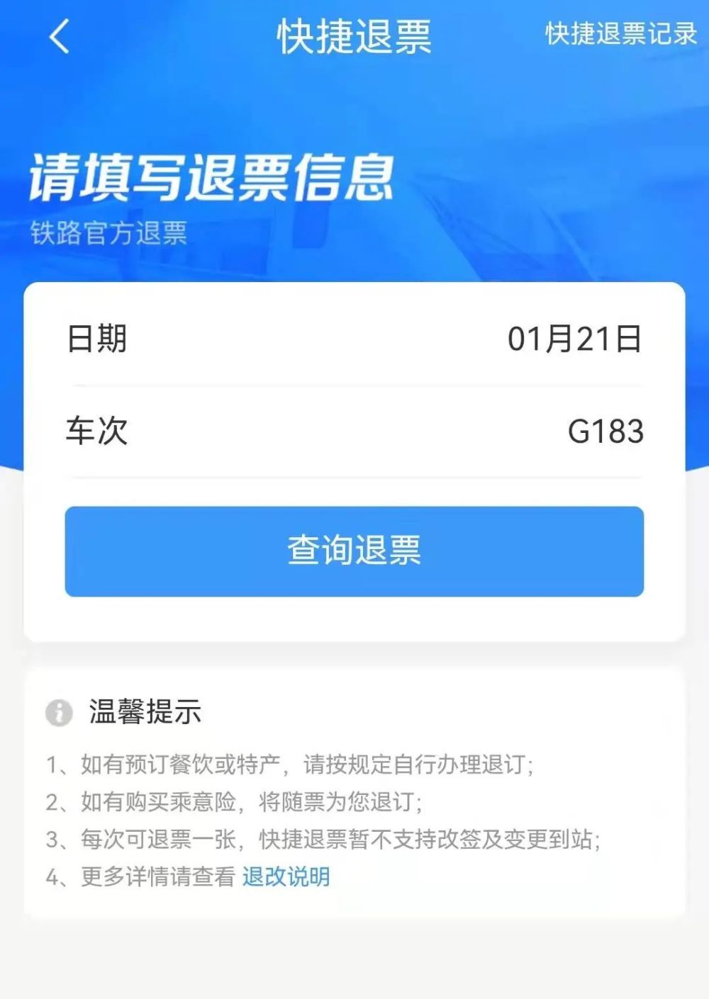 快捷退票成功