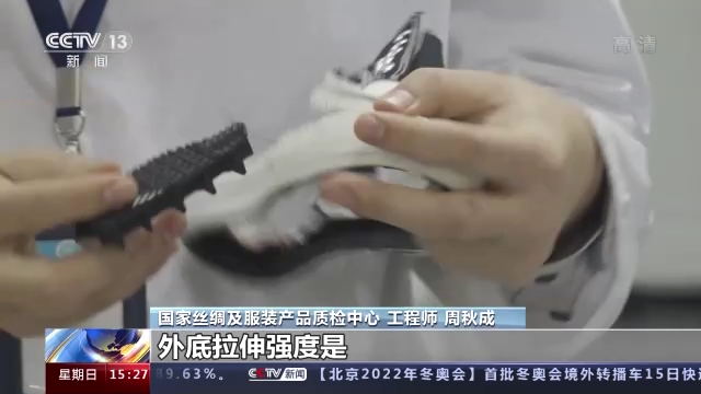 国家丝绸及服装产品质检中心 工程师 周秋成:外底拉伸强度是胶鞋的重要物理性能指标,它影响鞋的使用寿命和穿着舒适度。这个指标不合格的鞋,容易出现断底、鞋底开裂、老化等情况。
