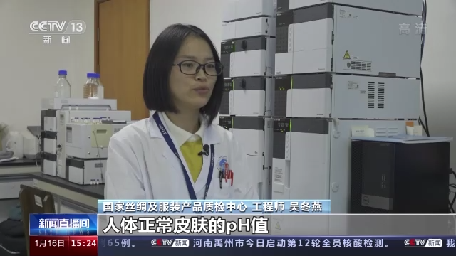 国家丝绸及服装产品质检中心 工程师 吴冬燕:人体正常皮肤的pH值在5.5~7.0,属于弱酸性。国家强制性标准规定,直接接触皮肤类及B类纺织品的pH值应该在4.0~8.5,这条裤子pH值实测结果为2.9,呈酸性,它可能会破坏人体皮肤表面弱酸性环境,引起瘙痒,并使皮肤容易受到其他病菌的侵害,引起过敏甚至皮炎等症状,甚至对人体的汗腺以及神经系统造成损害。此外,pH酸碱度偏高或偏低的纺织品在贮存过程中容易损坏。