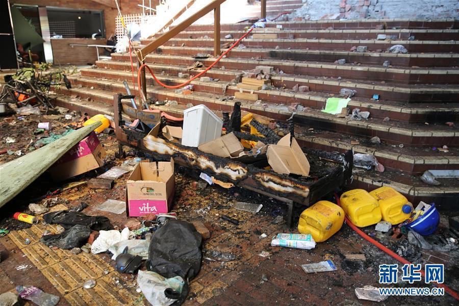这是丢弃在香港理工大学校园内的汽油弹等危险品(2019年11月21日摄)