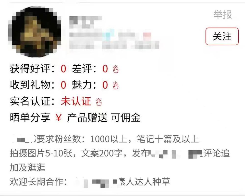 某品牌方有偿招募“网红”撰写虚假“种草笔记”