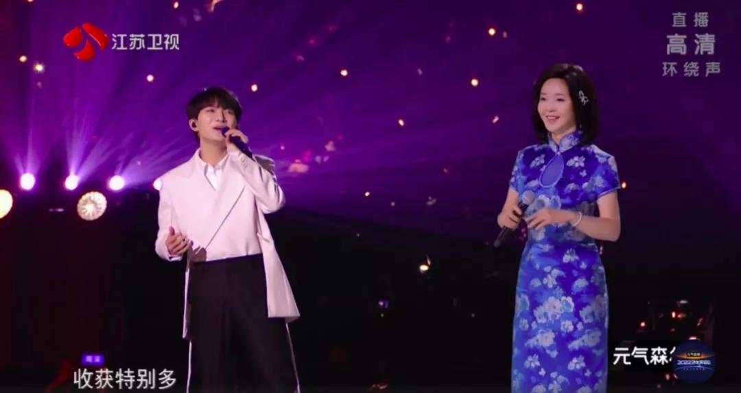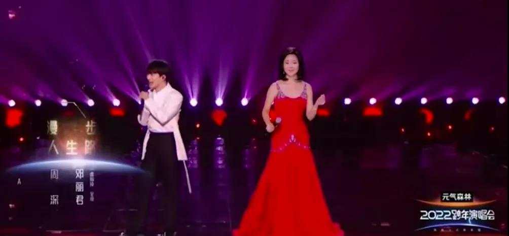 邓丽君(虚拟技术呈现)与周深在江苏卫视的跨年演唱会上