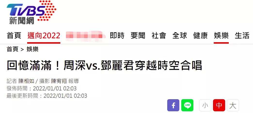 台湾“TVBS新闻网”称:“回忆满满!周深vs.邓丽君穿越时空合唱”。