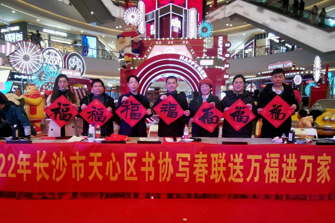 湖南日报·新湖南客户端1月26日讯(记者 刘瀚潞)千门万户曈曈日,总把新桃换旧符。近日,长沙市天心区书法家协会组织20余名书法家及爱好者走进梅溪湖,开展两天全天候不间断“送春联、送‘福’”活动,送出春联、“福”字约2000余副(幅),为市民送去新的一年美好愿景和祝福。