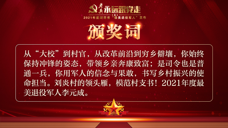 李元成,中共党员,1949年出生,1970年入伍,2005年退役,桃源县马鬃岭镇刘炎村党总支部第一书记。