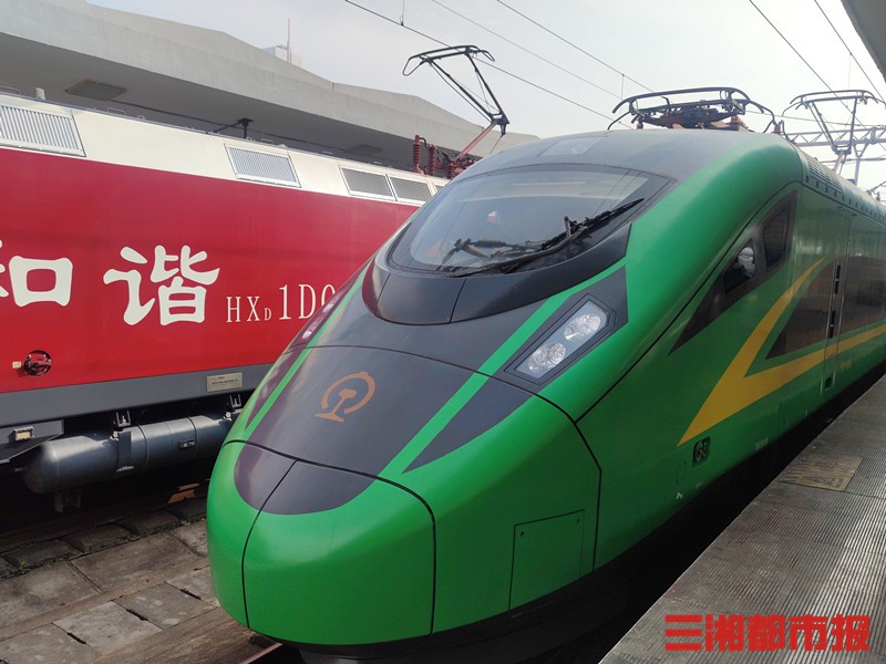 这趟“绿巨人”动车组试运行列车于当日7时03分从广州东站始发,途经京广线郴州、衡阳、长沙站,转石长线益阳、常德站后,上黔常线终到张家界西站。长沙至张家界西区段的值乘任务由长沙机务段司机担当。
