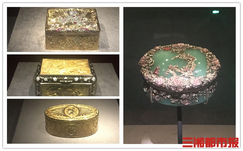 第二部分袖珍无瑕。袖珍肖像画和鼻烟盒是欧洲17-19世纪袖珍艺术品的典型代表,是宫廷贵族随身携带的心爱装饰物。袖珍肖像画多使用颜料和瓷釉作画,16世纪兴起,17世纪在英法两国流行并逐渐扩展至整个欧洲。鼻烟盒是贵族身份的标志之一,相比使用烟斗,嗅闻鼻烟被认为是更优雅高贵的行为。交换鼻烟是一种重要的社交方式,皇帝甚至颁布敕令规定交换礼仪。贵族阶层根据个人审美定制的鼻烟盒,多以金银制成并镶嵌宝石,或装饰袖珍肖像画,或吸收珐琅彩绘画、微型马赛克等工艺,极具特色,精美绝伦。