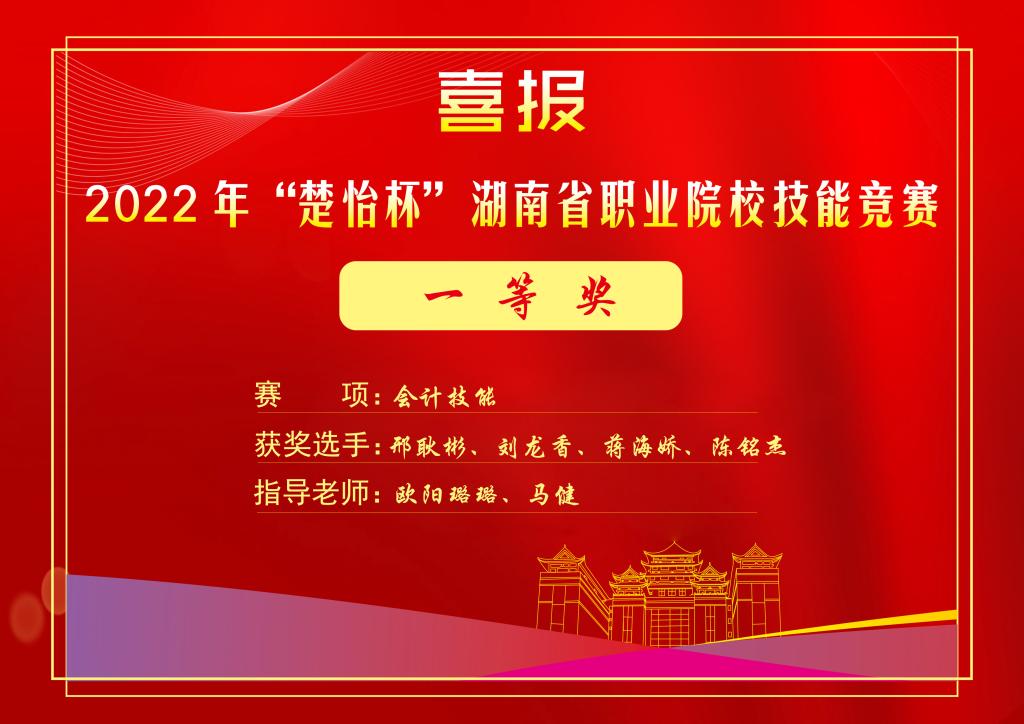 长沙民政职院学生荣获2022年度“楚怡杯”湖南省职业院校技能竞赛会计技能赛项一等奖