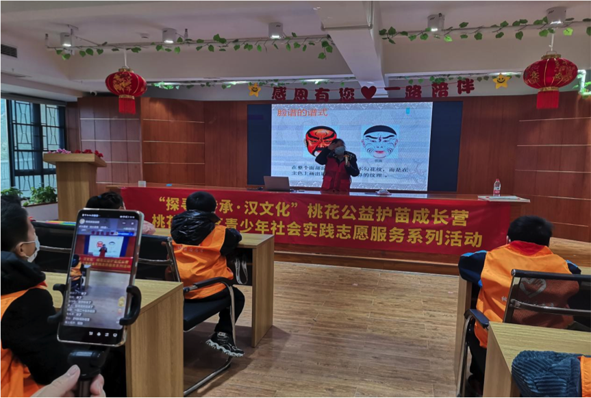 新湖南客户端1月21日讯(通讯员 吴劲 黄秋萍)为了让青少年们感受戏曲脸谱的魅力,体验脸谱DIY乐趣,2022年1月18日上午,长沙市望城区月亮岛街道桃花井社区联合望城湘伴公益、望城正星等辖区社会组织开展“桃花公益·探寻传承汉文化”系列之“画 脸谱·识 国 粹”线上线下直播公益课堂。