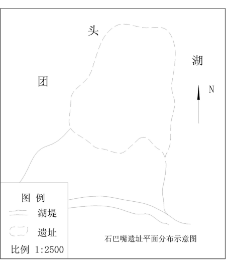 一条东西向脊线,南北两侧为缓坡,表面分布有石器和陶器两大类文物。其中石器包括石斧、砺石和石箭镞等,陶器多为夹砂红陶,包括陶鼎、陶罐、陶豆等器形。该址东南距石巴嘴遗址150米。