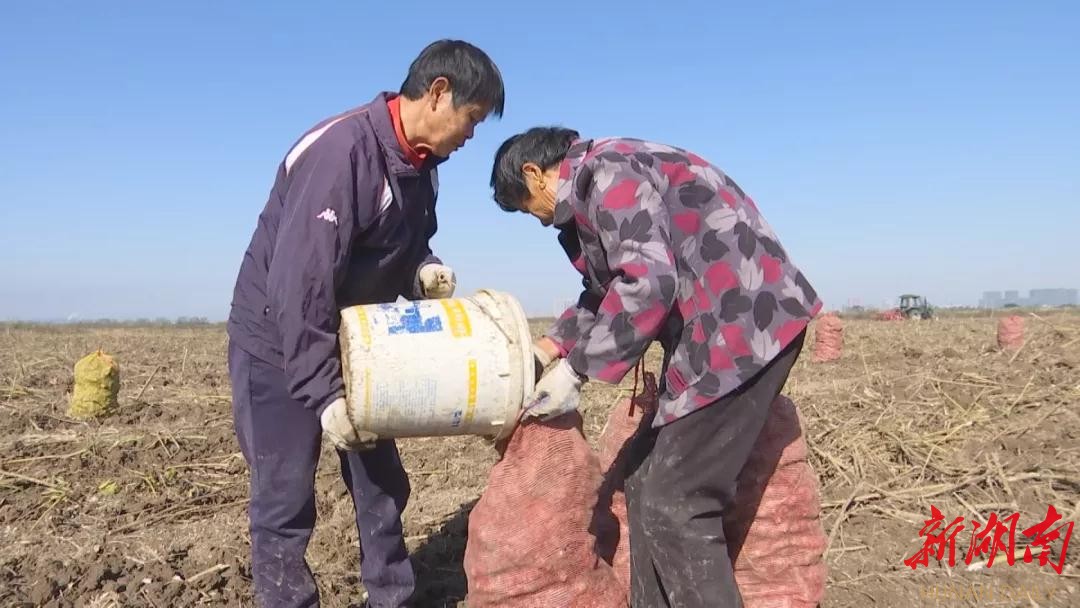 在位于澧县澧南镇回龙村的湖南琼玲农业科技有限公司菊芋种植基地,公司负责人廖生元正带领农户们收获菊芋,大家两人一垄,分工合作,翻土、筛捡、装袋,一派丰收景象。今年,该公司引进菊芋最新品种南芋九号,果聚糖的含量和菊粉的含量比原来的品种要高百分之二三十以上,而且平时的管理非常粗放,等秧苗长齐至50公分左右后就不用打理了。