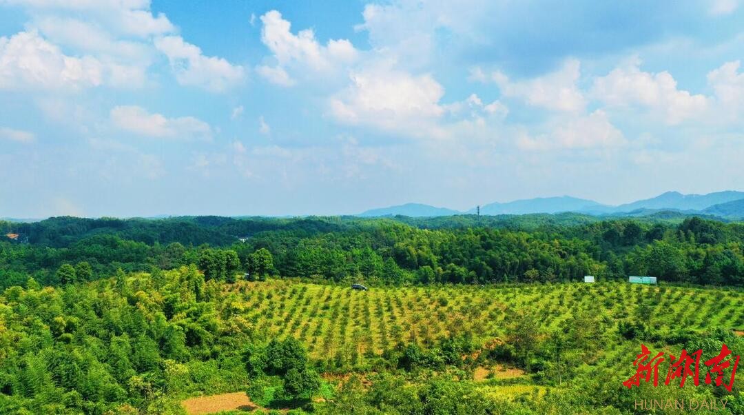 (云溪区路口镇黄皋村盘龙山上致富油茶硕果累累。)