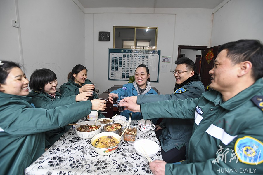 1月31日,娄底市中心医院120急救室医生金娜(左)和同事整理急救车上设备。当天是农历除夕,该院不少医护人员坚守在岗位上,服务病人,为人们的生命健康提供保障。湖南日报全媒体记者 辜鹏博 通讯员 梅舒 摄影报道