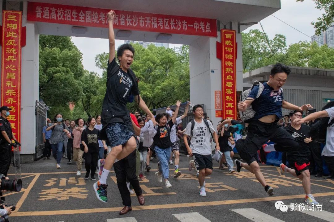 ▲2021年6月9日,长沙市一中,高考学子表达自己的兴奋之情。