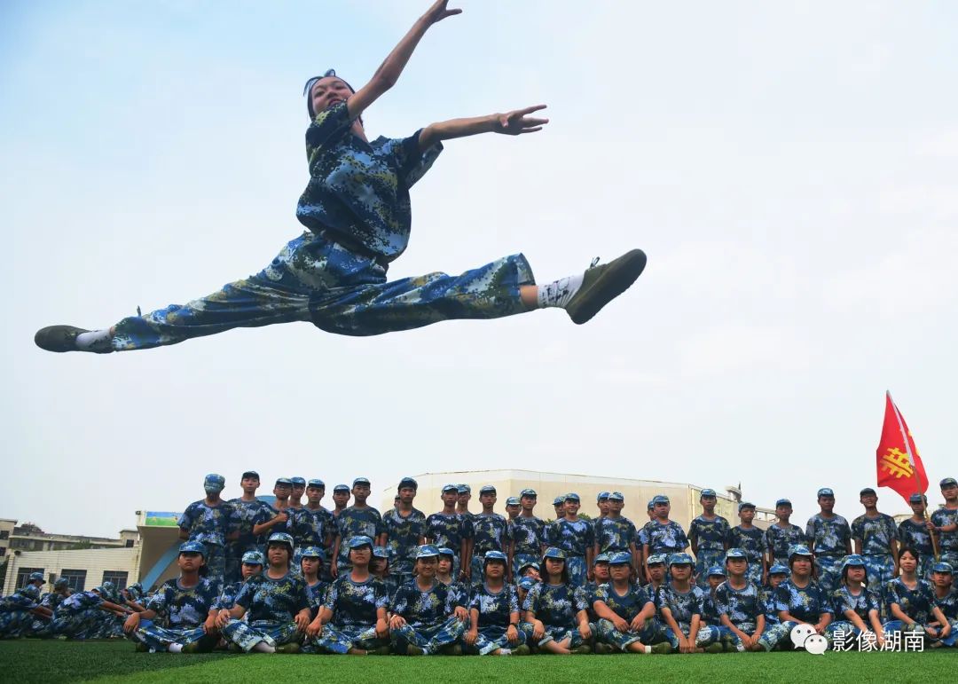 ▲2021年9月6日,嘉禾县第五中学田径场,学生在军训间隙跳舞娱乐。