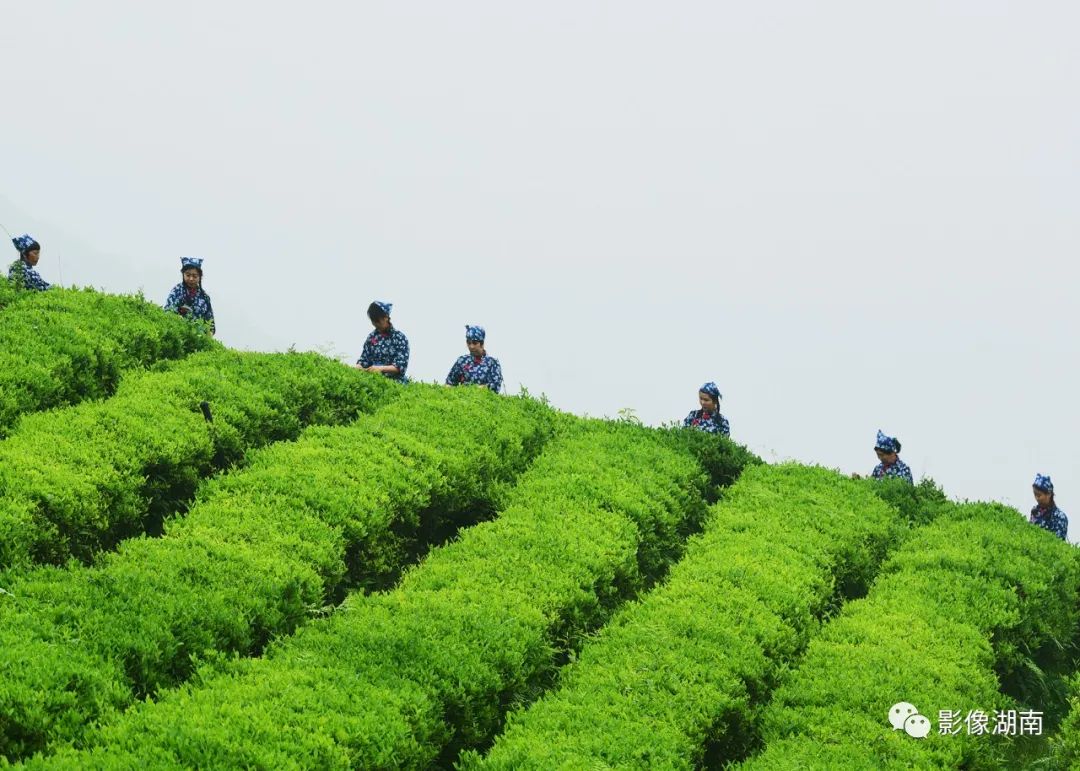 ▲2021年4月2日,蓝山县百叠岭,采茶姑娘在采摘春茶。