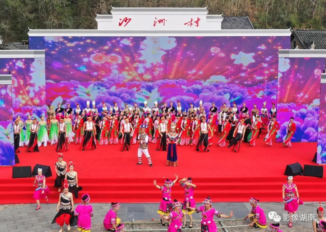 ▲2021年1月28日,汝城县文明瑶族乡沙洲村,村民与文艺工作者载歌载舞迎新年。