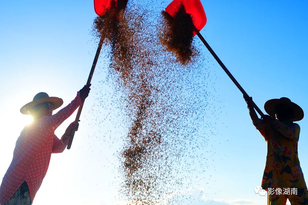 ▲2021年9月1日,嘉禾县广发镇大塘村,村民晾晒稻谷。