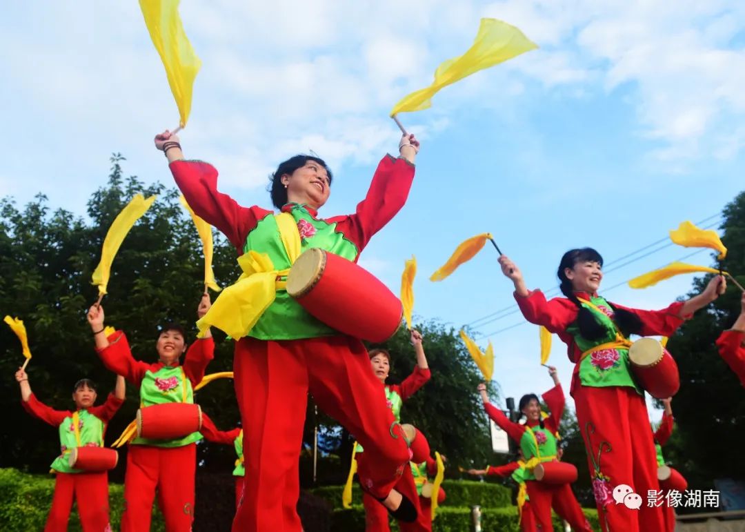 ▲2021年6月24日,嘉禾县人民广场,社区居民载歌载舞颂党恩。