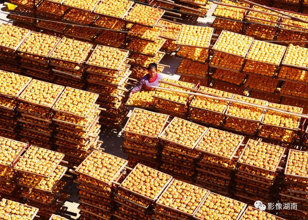 ▲2021年11月14日,广西桂林市恭城瑶族自治县嘉会镇寨头村,村民在晾晒柿饼。