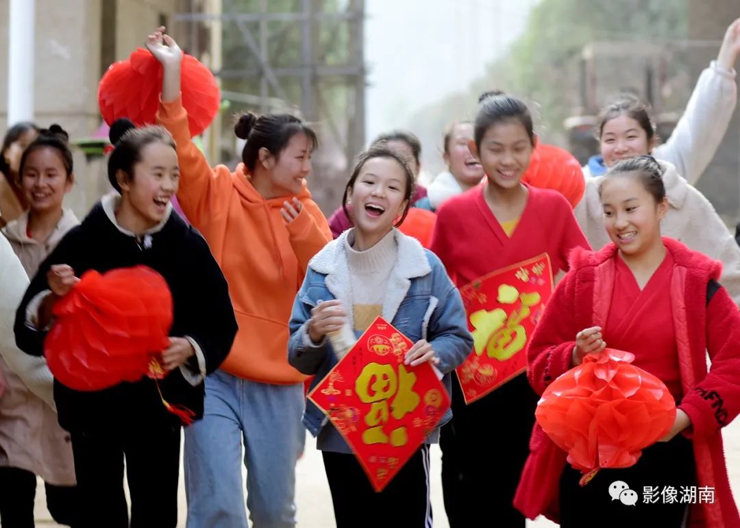 ▲2021年2月13日,嘉禾县广发镇广发村,学生欢快回家。