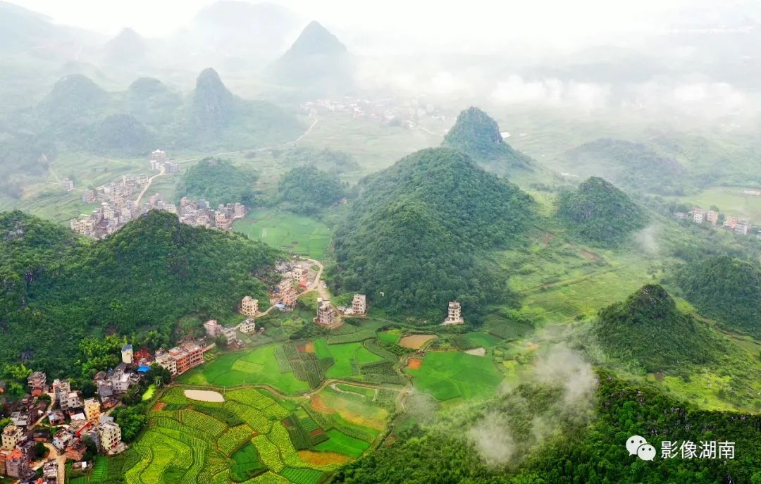 ▲2021年6月29日,嘉禾县广发镇新元坊村,云雾、青山、田园与村庄交相辉映。