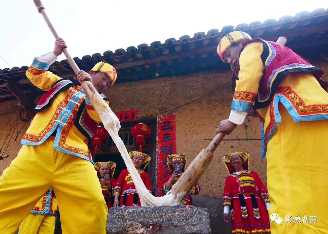 ▲2021年2月6日,宁远县中和镇西江源村,瑶族村民在打糍粑。