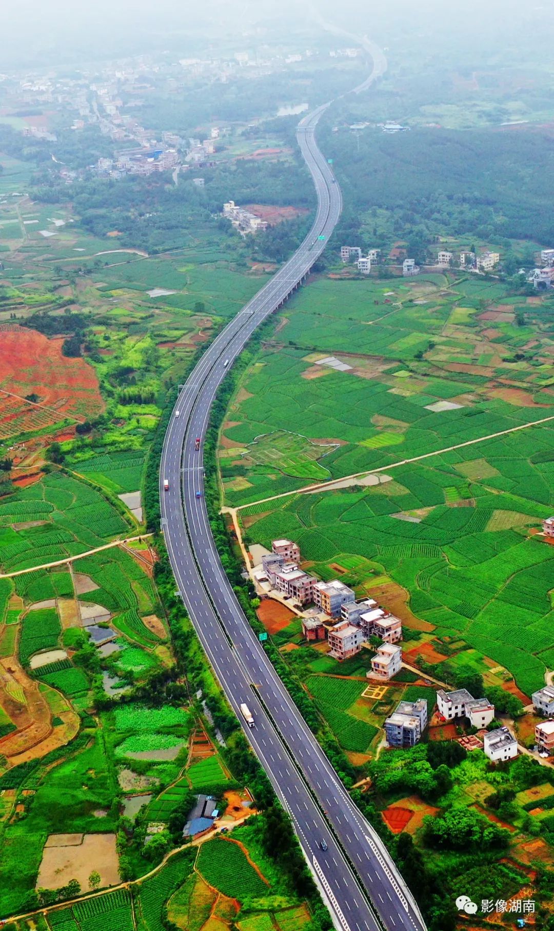 ▲2021年5月27日,许广高速嘉禾县龙潭段,公路犹如一条巨龙在碧绿的田野乡间穿行。