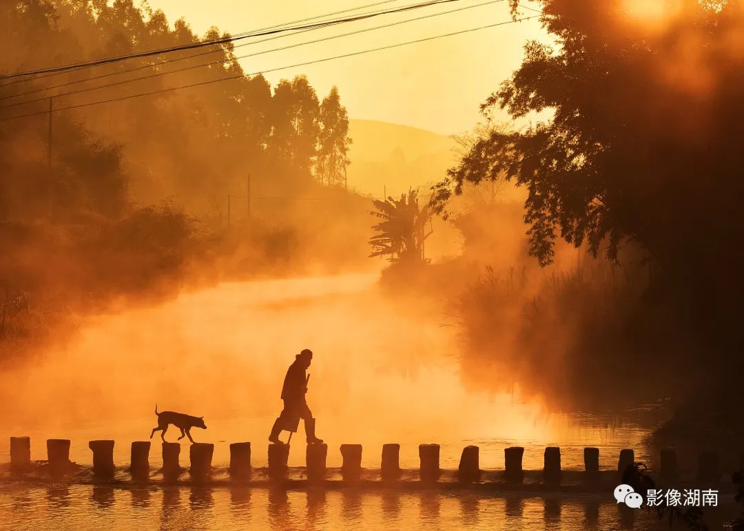 ▲2021年12月9日清晨,嘉禾县龙潭镇大方元村,村民从雾漫中的石磴桥走过,如入仙境。