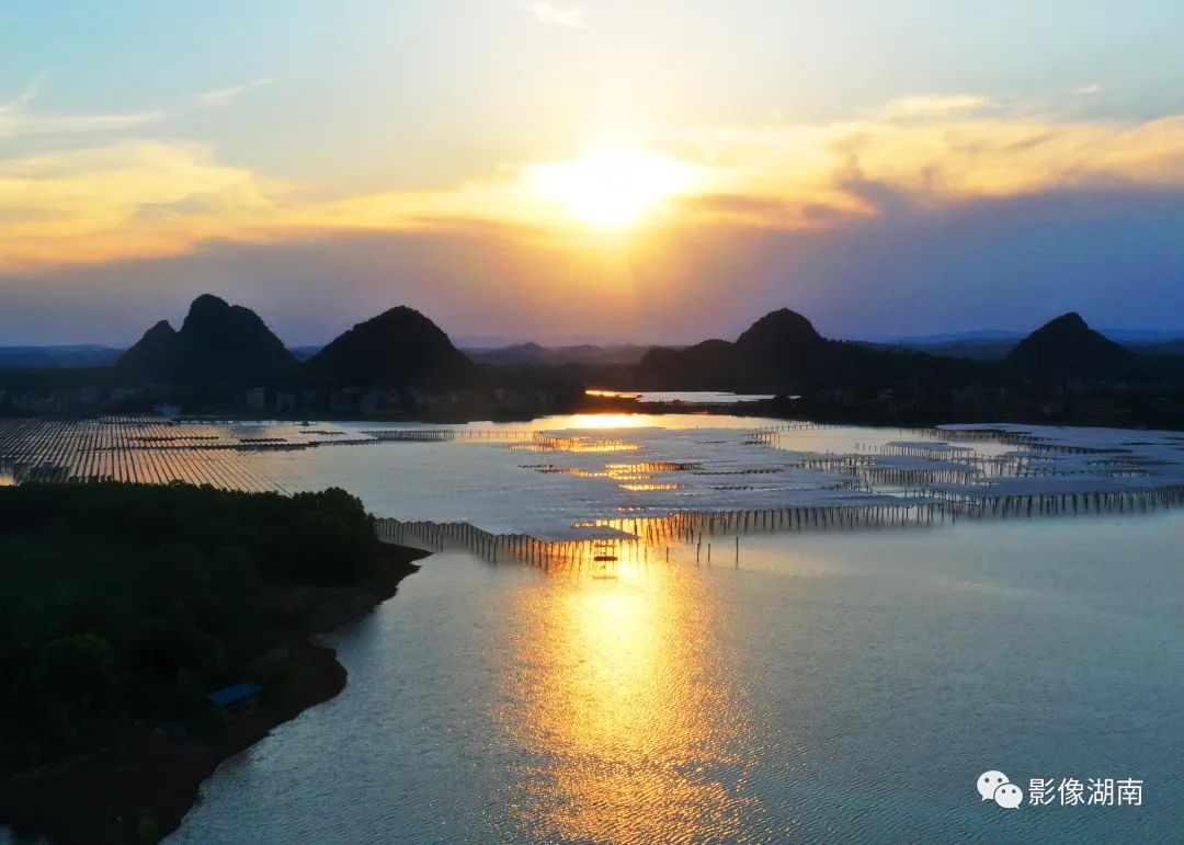 ▲2021年8月1日,嘉禾县千家洞水库“渔光互补”光伏发电场,光伏电板整齐架在水面上。