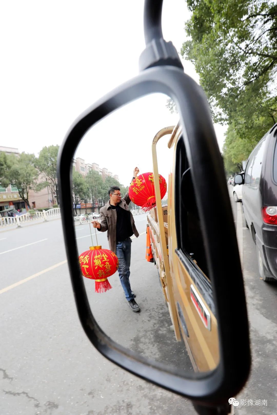 ▲2021年2月3日,工人正在资兴市资兴大道悬挂灯笼。
