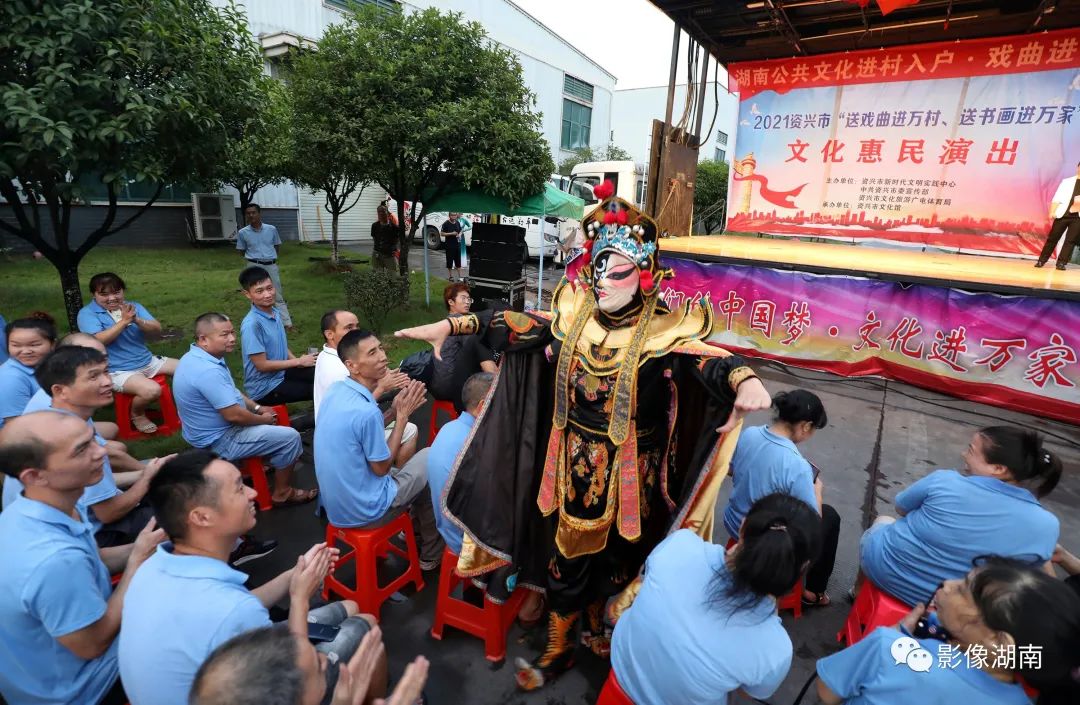 ▲2021年6月3日,演员在资兴市鲤鱼江完全小学为学生表演花鼓戏。