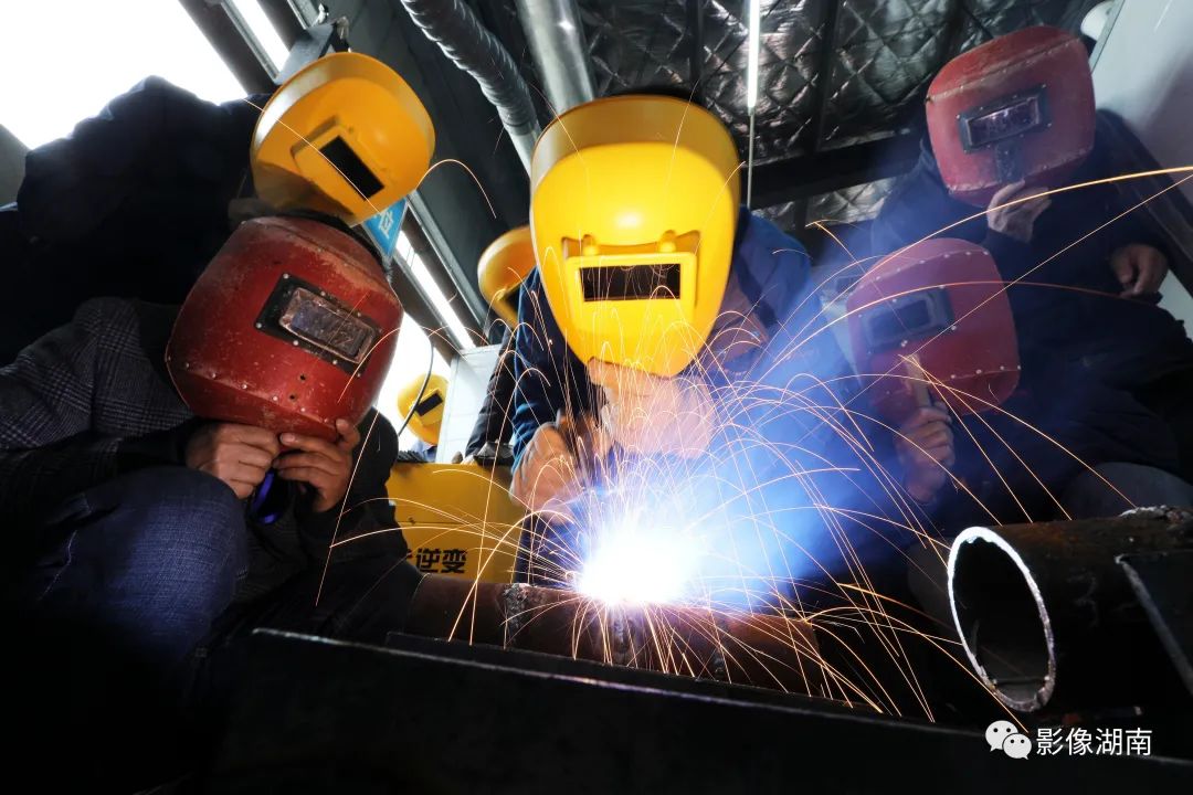 ▲2021年3月4日,资兴市职业教育中心,老师正在向学员们传授焊工职业技能。