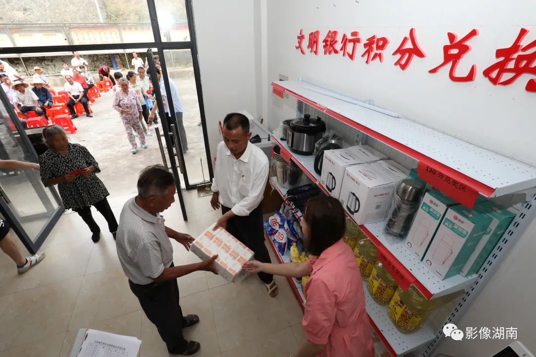 ▲2021年6月16日,资兴市州门司镇丹坳村“文明银行”,村民凭积分兑换日常生活用品。