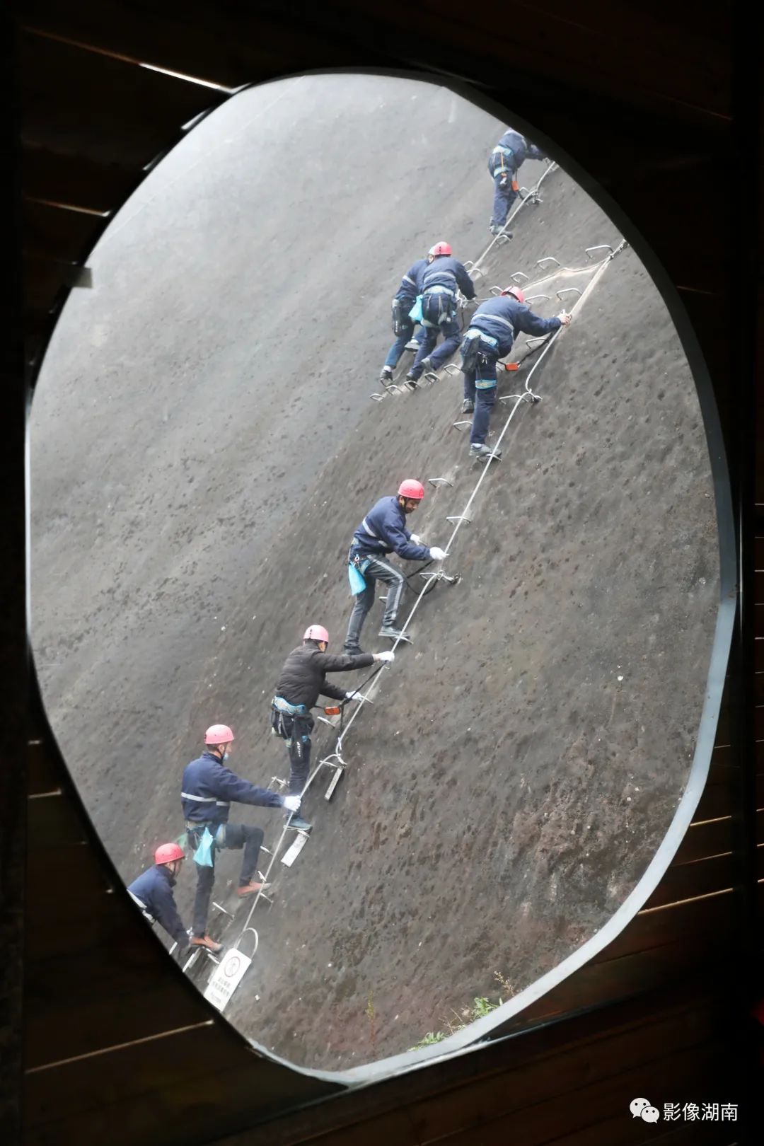 ▲2021年2月8日,资兴市一家户外拓展训练基地,外来务工者在体验飞拉达项目。