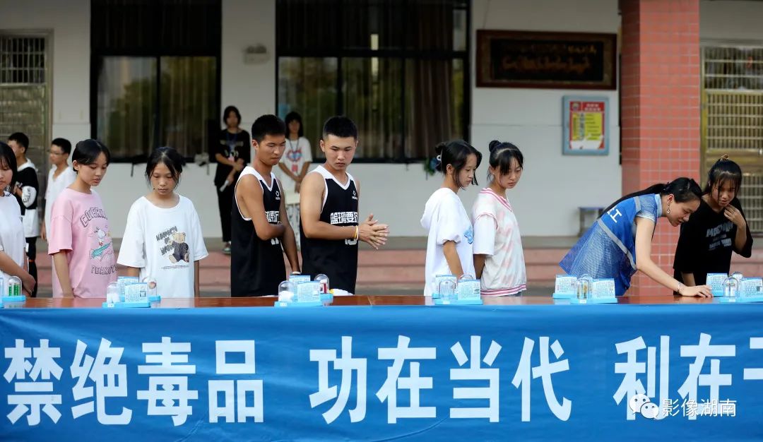 ▲2021年9月16日,资兴市职业技术学校,学生们通过仿真毒品样本了解毒品的危害。