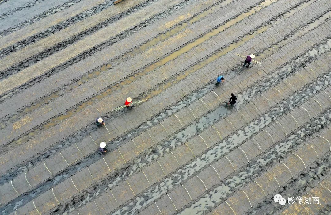 ▲2021年3月29日,资兴市唐洞街道星塘村,农民正在田间进行育苗。