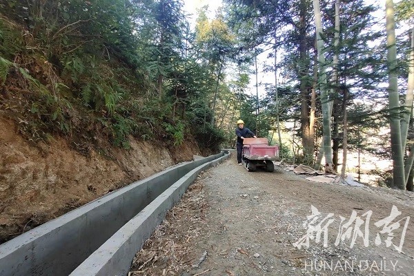 “我们把通往施工现场的小路进行平整,用上这个‘爬山虎’能减轻人工压力。”施工人员黄论前说。