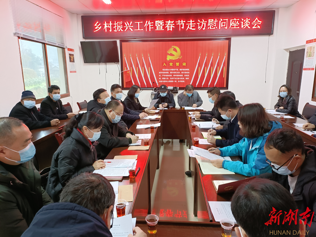 在夯坨村村部,湘西州政协组织召开了乡村振兴暨春节慰问座谈会,先后听取了州政协机关驻村工作队、村支两委、己略乡党委政府关于乡村振兴工作情况汇报。随后,与会领导宋清宏、邓建英、李志平、陈文君、宋宗江、何湘永先后发言,为该村巩固脱贫成效、推动乡村振兴出谋划策。