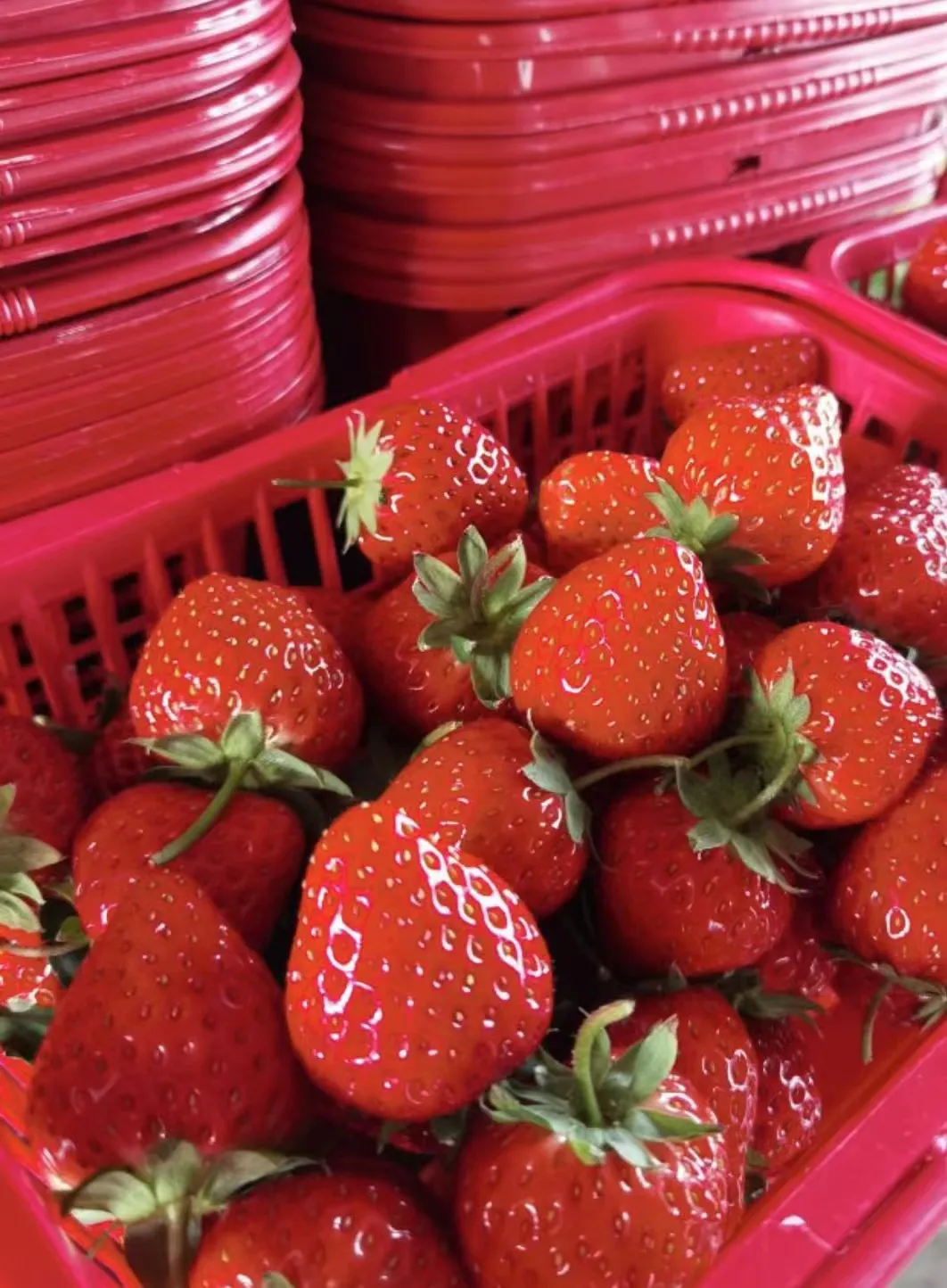 特别是因为2021年雨水少,草莓累计的养分也很多,所以特别的甜。