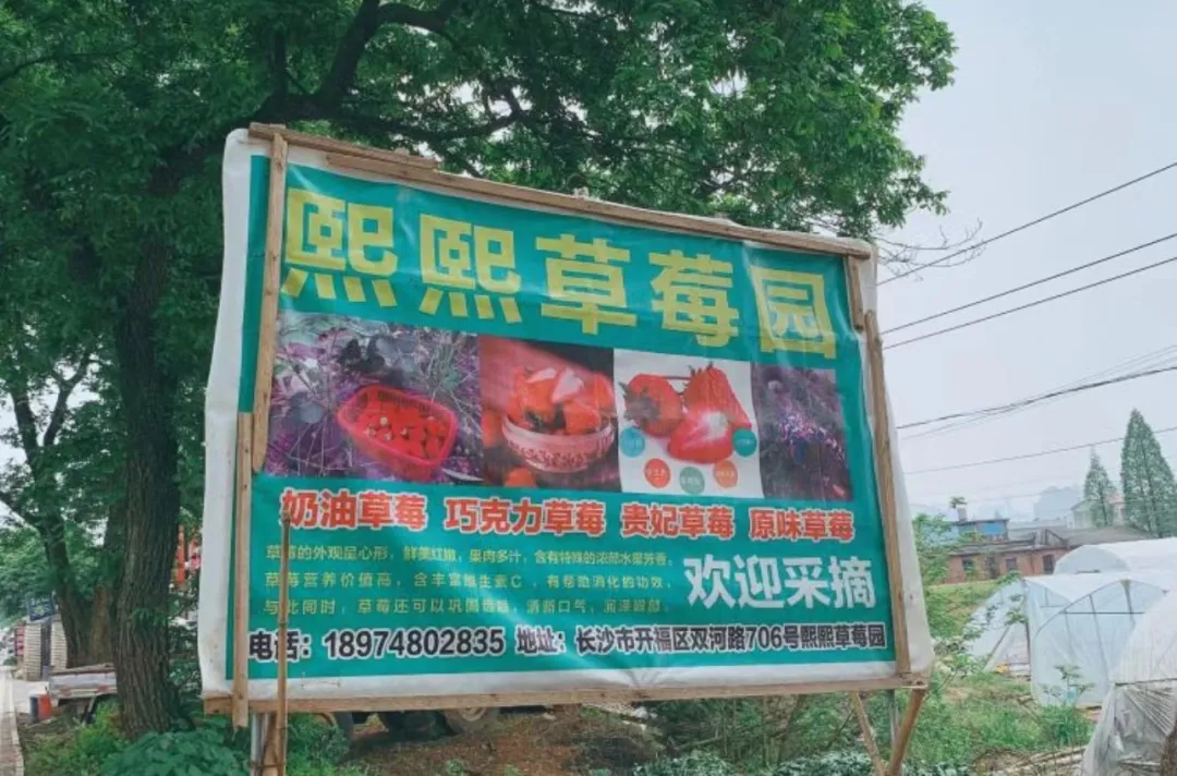 这家雷锋大道上的草莓园开了很多年,位置好找,附近有奥莱小镇以及长沙医学院。