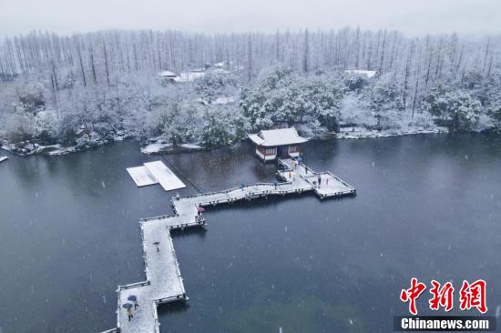 虎年开工首日,全国多地迎来降雪天气。图为2月7日,浙江杭州迎来降雪天气,西湖呈现“雪湖”景观,美不胜收。 中新社记者 王刚 摄